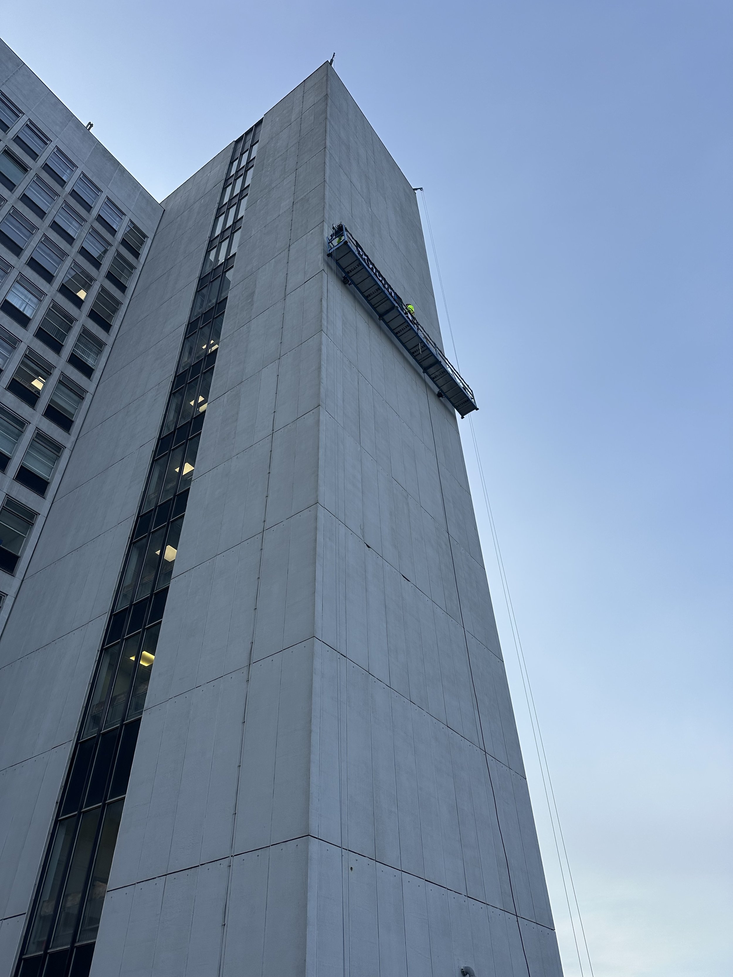 This project showcased Skyform’s versaility as a multi-trade specialist, and highlighted our adapatability when working at height. For the sealant works, we were able to draw upon the expertise and equipment of our own Skyform Access division to bring in our own in-house cradle system. Meanwhile to install the bird spikes we had no problem adjusting to the hospital’s existing cradle system, which the client proposed we use to help simplify works.